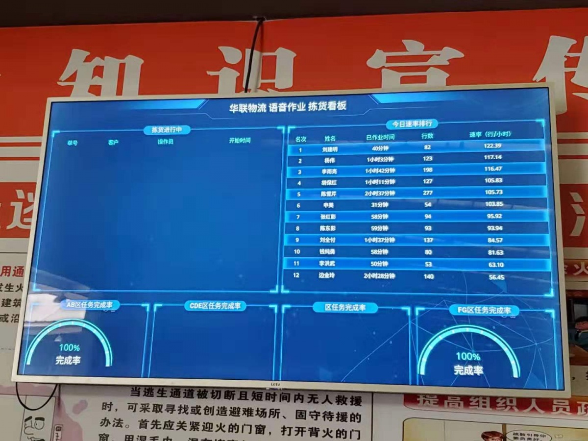 过去的分拣模式还常使得一些工人抱怨不知道自己完成了多少作业,这种分工不明确不仅使分拣效率低,而且工人绩效也得不到提高。现在电子屏幕上会实时播报工人的作业完成情况,避免了重复作业、作业遗漏等情况的发生。