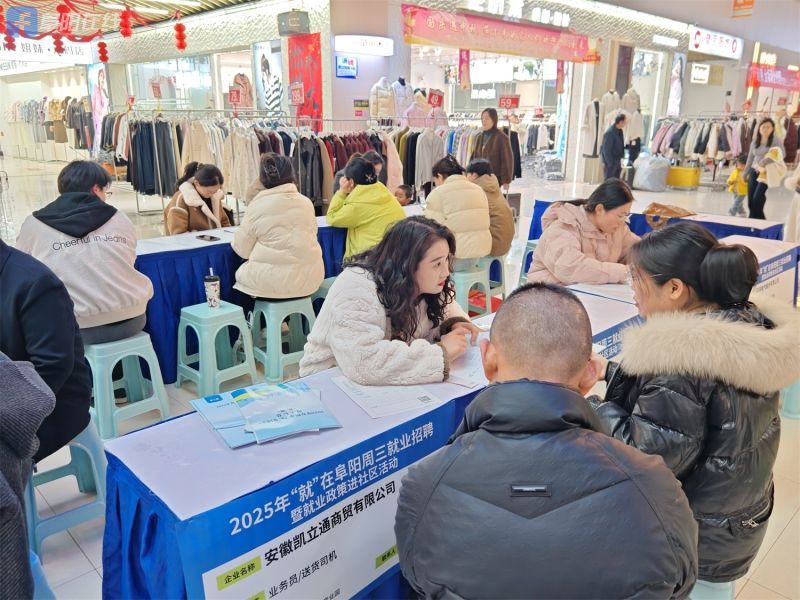 为推动就业服务下沉基层、贴近群众,12月10日,由阜阳市就业管理服务中心、阜阳市企业社保中心、阜阳市退役军人事务局、阜阳市残疾人就业服务中心、颍泉区人才综合服务中心、阜阳市退役军人就业创业促进会联合主办的专场招聘会来到了阜阳国际服装城,把就业岗位送到市民身边,让前来逛街购物的群众实现“逛着街就把工作找了”。