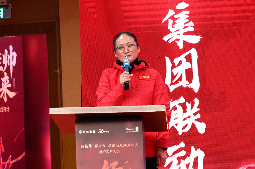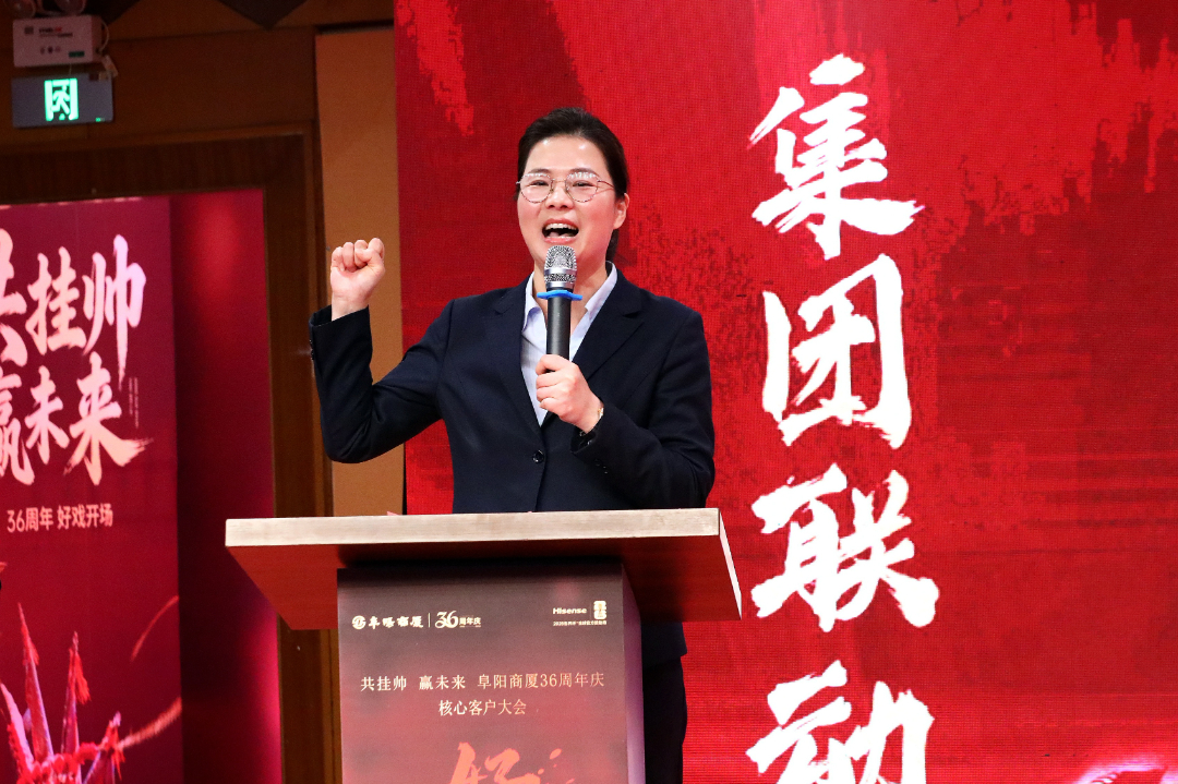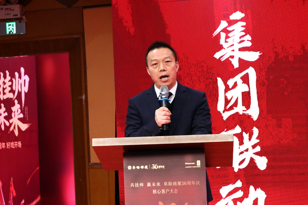 多年来,阜阳商厦的蓬勃发展离不开供应商伙伴的鼎力支持。本次誓师大会特别邀请到合肥营销中心海信电视总经理漆红强作为供应商代表登台讲话。漆红强总经理表示,阜阳商厦作为阜阳本土商业标杆,始终秉持诚信经营、合作共赢的理念,是供应商值得信赖的合作伙伴。未来,海信电视将全力配合阜阳商厦36周年庆活动,为阜阳百姓带来更优质的产品与服务,携手共创更加辉煌的业绩。