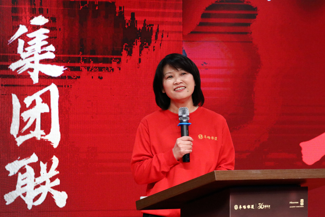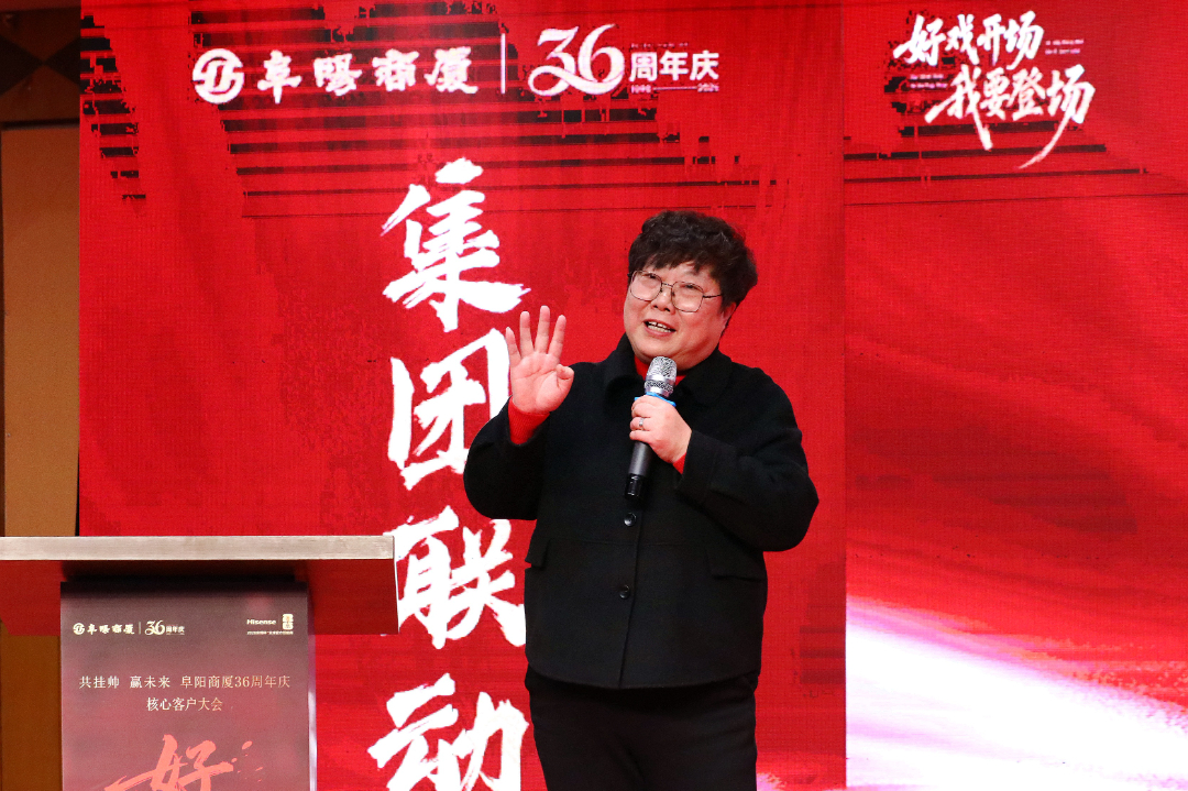 原董事长、高级顾问闻玉华满含深情地送上了对商厦的祝福。她看着台下一张张朝气蓬勃的面孔,回忆起商厦36载栉风沐雨的发展之路,感慨万千。她衷心祝愿商厦36周年庆活动圆满成功,期盼商厦未来能继续深耕本土市场,坚守为民服务的初心,勇立商业潮头,再创属于阜阳商厦的新辉煌,为阜阳的商业发展注入源源不断的活力。