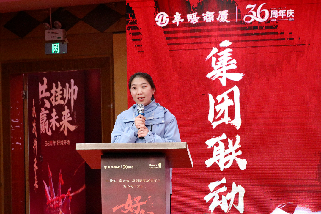 大会的核心环节,阜阳商厦营运中心经理吕志红率先登台,详细解读了36周年庆系列活动规划。从促销方案到服务升级,从线上引流到线下体验,每一项规划都紧扣“惠民、便民、利民”的宗旨,为本次周年庆活动的顺利开展明晰了方向、划定了路径。