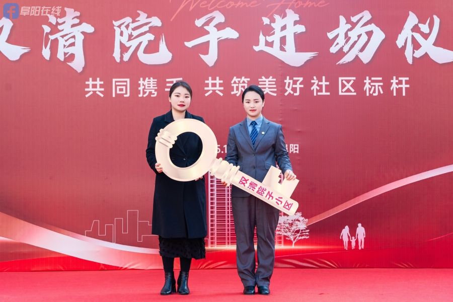 仪式核心环节——交接仪式庄重而富有寓意。开发商代表将礼仪呈上的“金钥匙”交付项目经理手中。这把钥匙不仅是开启社区之门的象征,更承载着开发商的信任与业主对美好生活的向往,双方合影留念,定格这一重要瞬间。