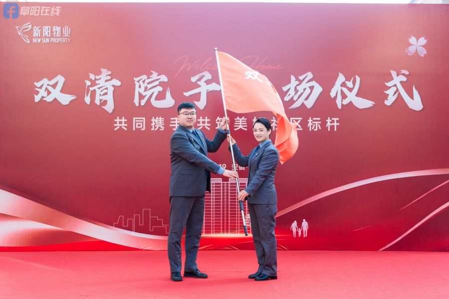随后,新阳物业总经理郑重挥旗,将象征责任与使命的项目旗帜郑重授予项目经理,寓意公司正式托付双清院子服务重任。
